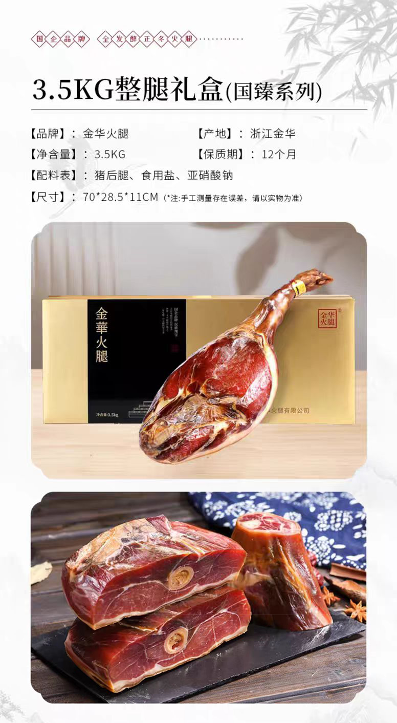 【金华火腿】3.5kg国臻整腿礼盒正冬火腿肉浙江土特产送礼